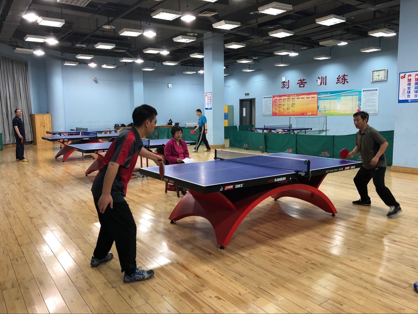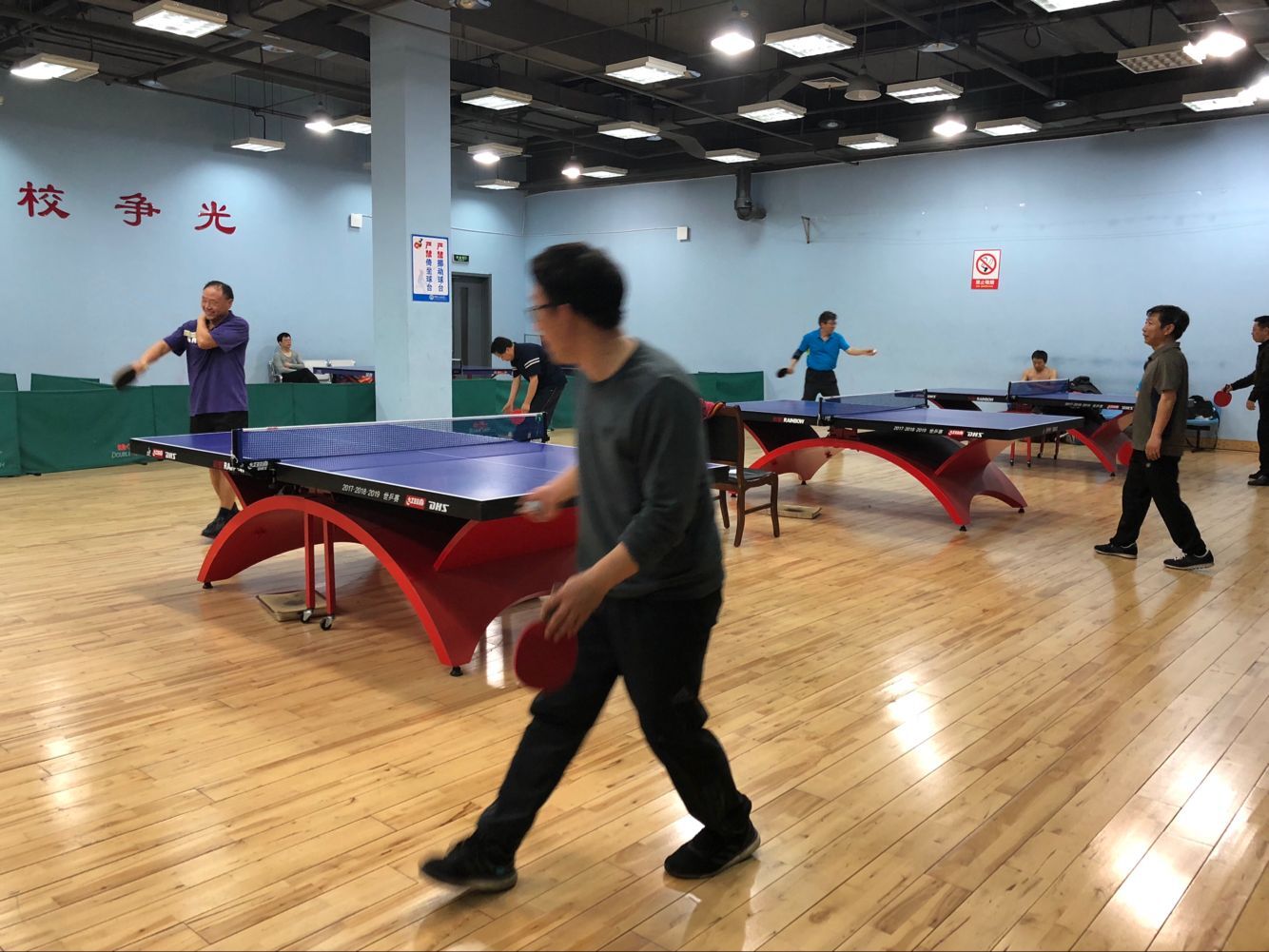 2018年5月11日下午,马克思主义学院工会组织学院全体教师在学校体育馆乒乓球室举行了马院乒乓球男子排位赛。比赛采取大循环,三局两胜制。经过激烈的角逐,最终叶立国老师获得男子单打一哥称号。