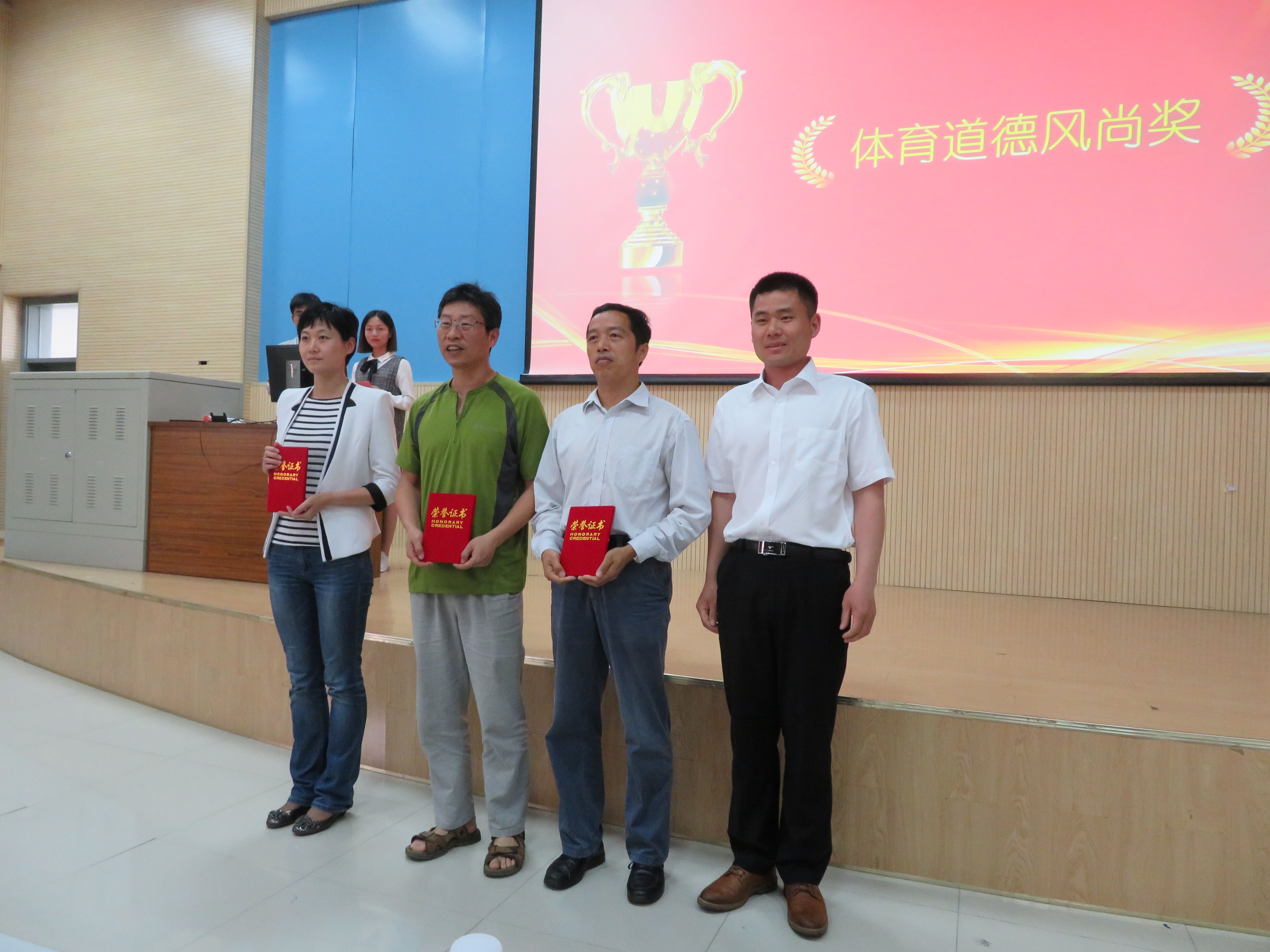 6月4日,yl88858永利官网在南教300号隆重召开田径运动会及重要体育活动师生表彰大会。在2018年学校田径运动会中,地学院教职工代表队荣获团体总分第一名,创造了学院建院60多年来的最好成绩,实现了历史性突破,教工代表队同时获得“体育道德风尚奖”荣誉称号。受工会主席张军委托,工会副主席郭杰参加表彰大会,并为“体育道德风尚奖”个人和金牌运动员获奖人员颁奖。