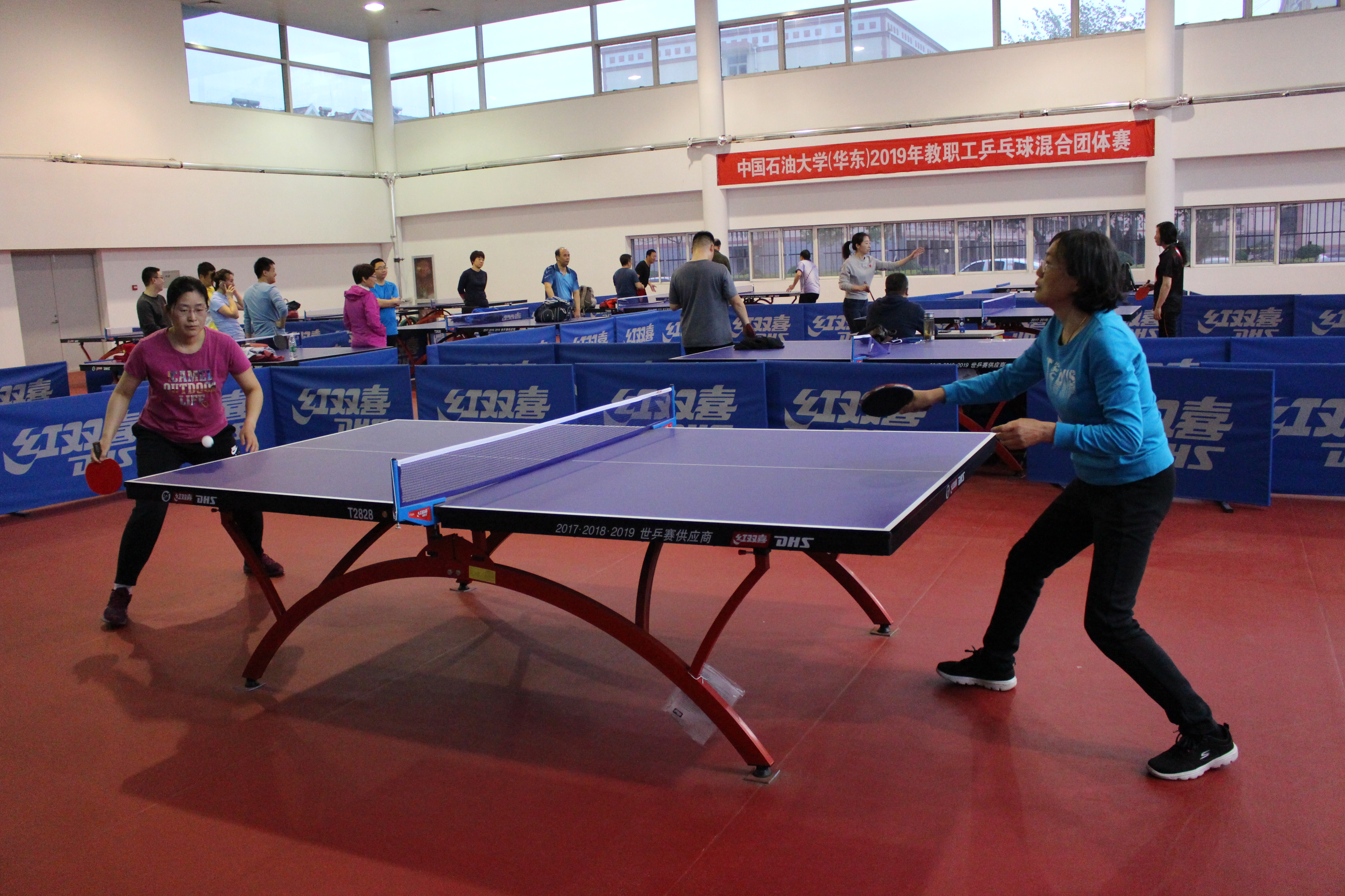 4月28日,2019年教职工乒乓球团体赛圆满结束。本次比赛由校工会主办,教职工乒乓球协会承办,在青岛和东营两校区,共有21支队伍参赛。