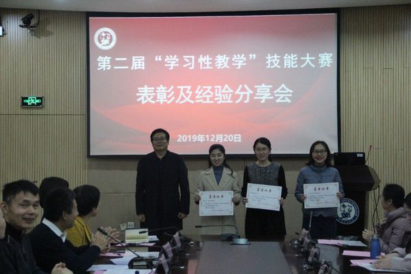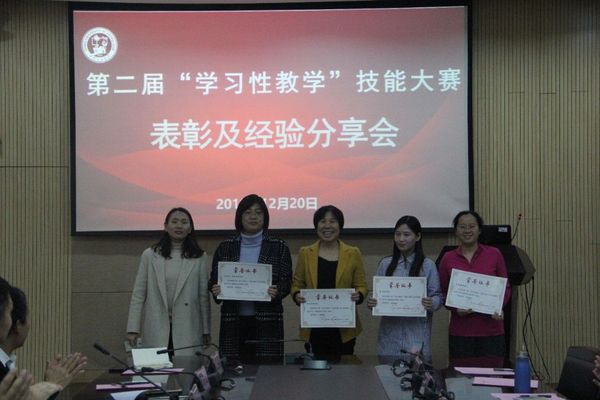 12月20日,学校举行第二届“学习性教学”技能大赛表彰及经验分享会,表彰了30名“学习性教学”理论学习优秀教师和课堂实践比赛13支获奖的教学组。工会主席张军,党委教师工作部、教师教学发展中心副部长、副主任张庆荣,教务处副处长刘臻出席会议并为获奖教师代表颁奖。获得比赛一等奖的郭卫萍教学组、杨修洁教学组和陈琳教学组进行了视频成果展示和经验分享与交流,会场互动,气氛热烈。