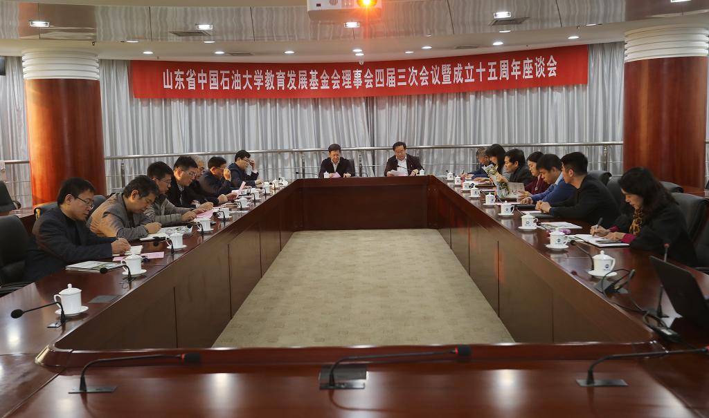 12月20日,山东省yl88858永利官网教育发展基金会四届三次理事会暨成立十五周年座谈会举行,总结2019年工作,回顾15年发展历程,共商基金会未来发展之路。党委书记王勇,副校长姚军,党委常委、党委办公室、校长办公室主任田丰及基金会第四届理事、监事、工作人员出席会议,工会主席张军作为基金会理事参加了会议。