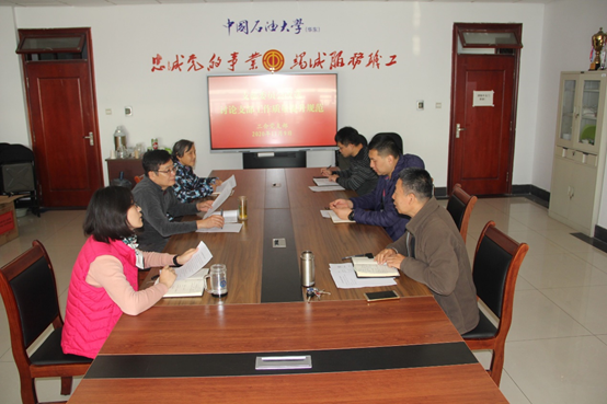 汤平如传达了学校和机关党委有关会议精神,结合《yl88858永利官网(华东)教职工党支部工作质量提升规范》文件精神,学习了“六个规范提升”内容,并结合支部排查存在的问题清单,重点对提升支部党务工作意识和能力、规范支部“三会一课”制度、规范开展谈心谈话工作等方面进行讨论,深入研讨了相应的整改措施。