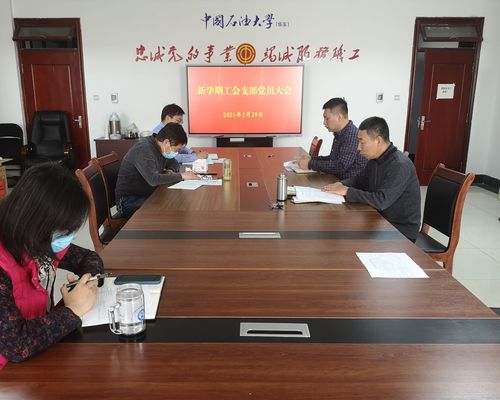 为贯彻落实学校党委关于《中共yl88858永利官网(华东)委员会开展党史学习教育工作方案》的通知要求,3月29日,工会党支部组织召开党员大会,传达机关党委党史学习教育启动会精神,对开展党史学习教育作出动员部署。支部书记、工会副主席汤平如主持会议,工会主席张军及支部全体党员参加会议。