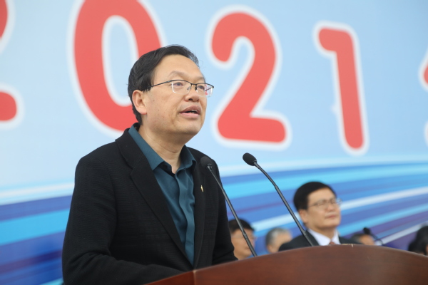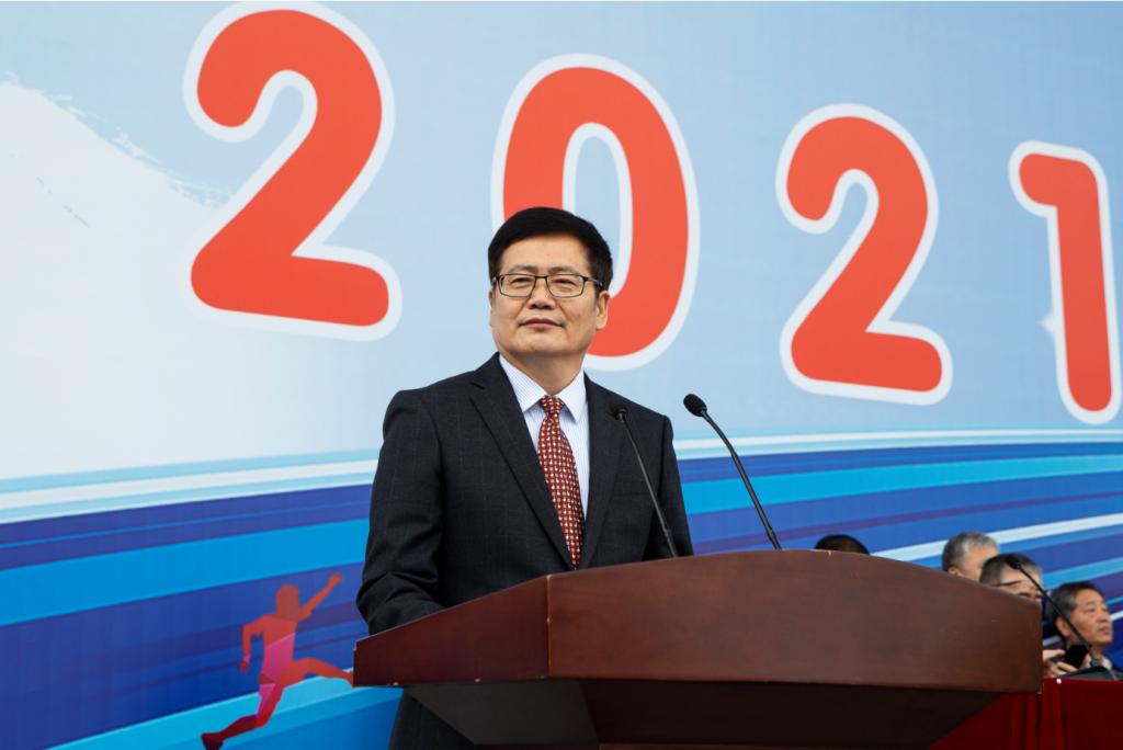 党委副书记、体育运动委员会主任万云波致开幕词,代表学校向本届运动会的成功举办表示祝贺,向为运动会辛勤付出的师生员工表示衷心感谢,向各位回家的校友表示诚挚欢迎。他指出,今年是中国共产党成立100周年,也是学校“十四五”开局之年。希望广大师生以本次运动会为契机,加强体育锻炼,以更加饱满的热情和健康的体魄投入到学校各项事业的建设中,为建设石油学科世界一流、多学科协调发展的高水平研究型大学而努力奋斗,以优异成绩向建党100周年献礼。