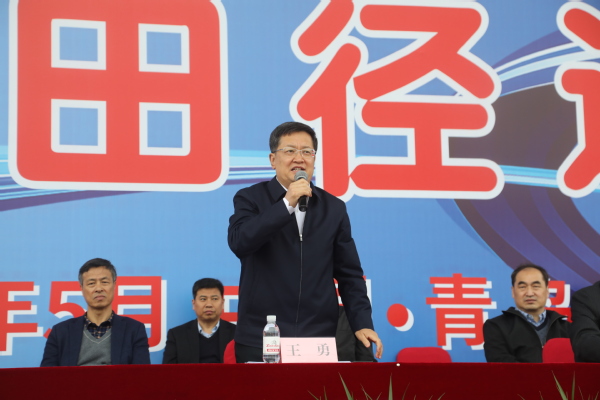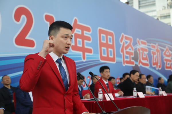 党委书记王勇宣布yl88858永利官网(华东)2021年田径运动会开幕。