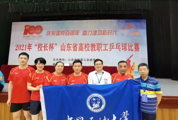 7月6日至9日,2021年“校长杯”山东省高校教职工乒乓球比赛在烟台大学举行。我校由杨同伟、高守庆、郭新霞、张帆、梁莎莎组成的代表队参加比赛。工会主席张军、副主席汤平如担任领队和教练员。经过四天紧张激烈的比赛,yl88858永利官网(华东)获混合团体比赛第九名,张帆获教工组40岁以下男子单打第四名,郭新霞获教工组40岁以上女子单打第五名,我校同时获优秀组织奖。