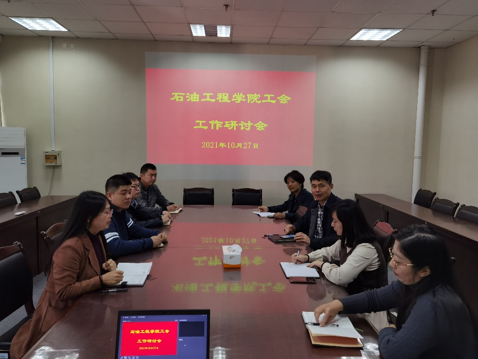 10月27日上午,石油工程学院工会召开工会工作研讨会,为贯彻新一届院领导“事业石工 和谐石工 幸福石工”的执政理念,对工会工作进行顶层设计研讨。学院工会主席张卫东及学院全体工会委员参加会议,会议由张卫东主持。