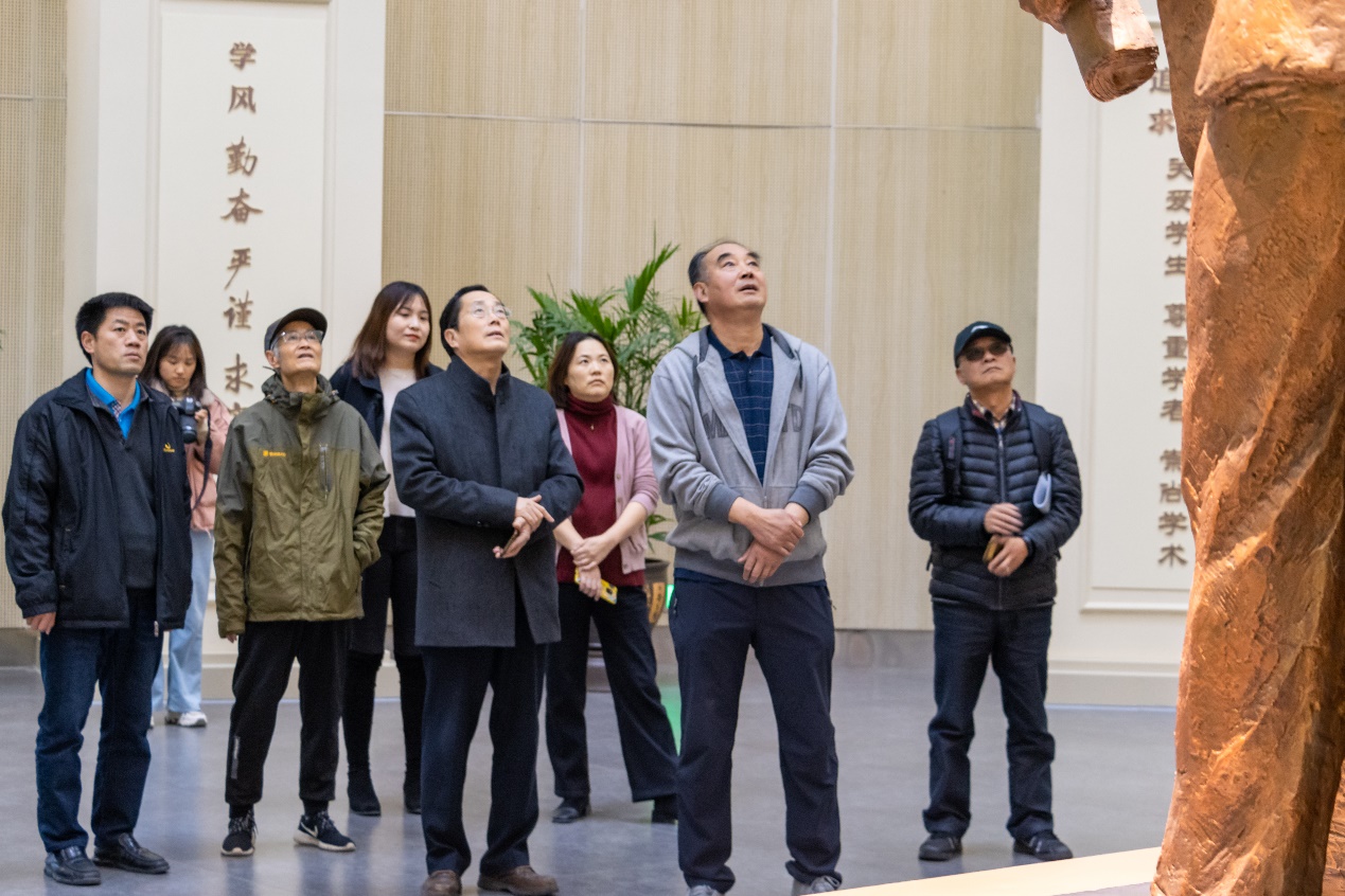 为迎接建校七十周年书画展览展开学习创作,2021年12月8日下午,教职工书画院师生前往校史馆参观学习,教职工书画院院长李心市出席活动。
