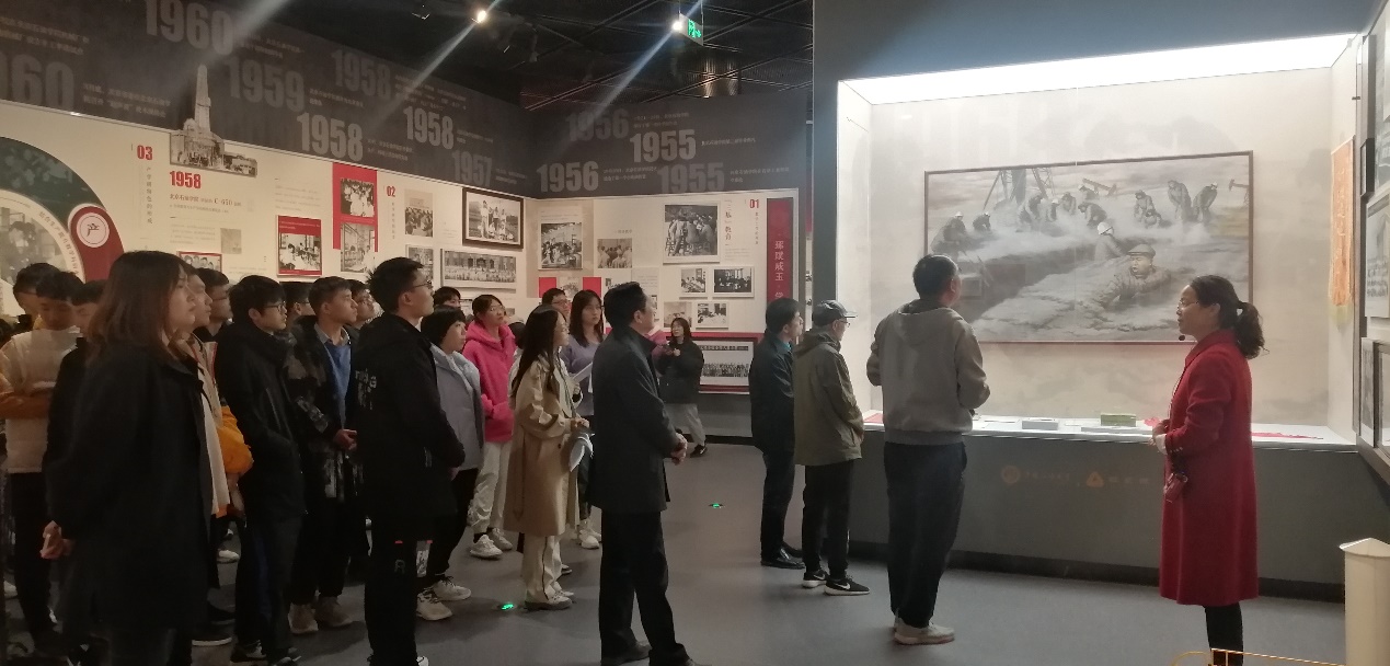 本次参观学习在校史馆讲解员生动的讲解下,参观师生详细了解了编年体展厅、石油精神专题展厅、艺术馆。展厅综合采用现代信息技术和视觉美学,通过图文、实物、多媒体、虚拟影像、立体造型、场景还原等多种方式对学校不同历史阶段进行了场景还原,引起众多师生的回忆和共鸣。随后,教师代表为校史馆留字纪念。