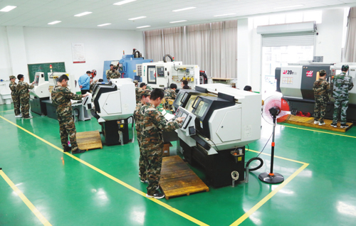 学生在分组进行智能制造数控加工训练