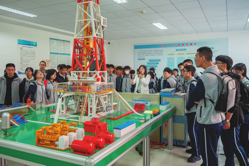 门类齐全、设备先进的综合条件吸引着许多高等学校前来参观学习,近年来,俄罗斯国立古勃今石油天然气大学、山东大学、中国地质大学、中国海洋大学等60余所国内外高校都曾来此调研交流,内容涉及人工智能技术、钻井工程技术、采油工艺与装备、智能制造、虚拟仿真技术等多个方面。“工训中心在人才队伍培养、科研成果转化方面发挥着重要作用。”烟台大学党委书记张伟在来访工训中心时充分肯定了工训中心的研发创新能力。值得一提的是,工训中心还曾为中国地质大学(武汉)、山东石油化工学院、湖北职业技术学院等多所学校进行工程实训。工训中心已成为高校间教学科研与人才培养交流的一个重要平台。近年来,工训中心还对接青岛市各大中等学校,将服务拓展至当地青少年,助力中等学校的劳动实践教育与科技创新教育,每年接待高中生超1000人次。