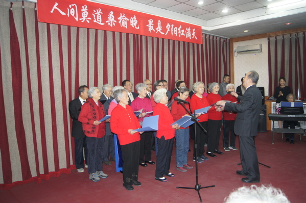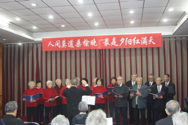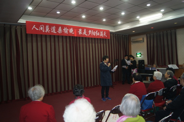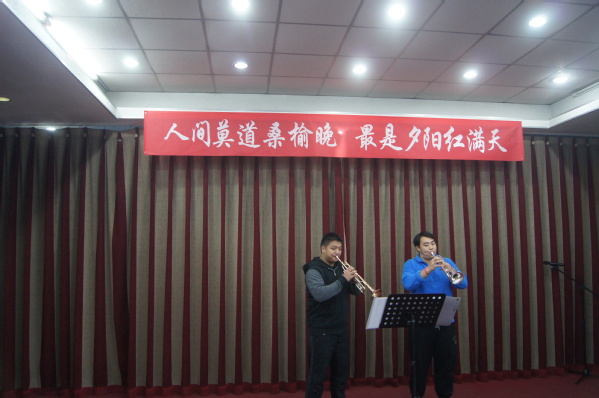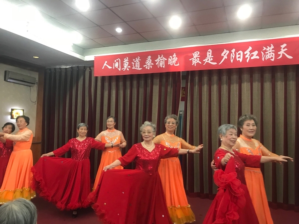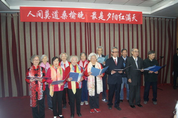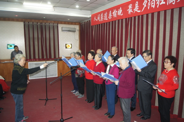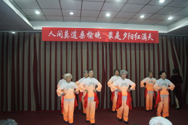 “人间莫道桑榆晚 最是夕阳红满天”。在演出筹备期间,老同志们积极准备,付出大量精力,力求表现更完美。石板房银发合唱队和养生聊天室的老师们态度认真、专注,每周加班加点练习,对不熟悉的歌曲回家多听旋律并跟唱。亚运村演出队年龄最大、身体状况一般,但是每次排练就像正式演出一样认真对待,声音洪亮,即便最后更换曲目仍唱出高水准。城华园演出队在一次次排练中不断修改朗诵词,力求把最美的祝福诠释出来。石板房舞蹈队准备了三个节目,每周训练两次,平时用手机录像后查找问题、不断修正,演出前的晚上还在加班走台,期望把更优美的舞姿呈现给观众。