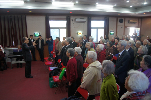 演出在石板房小区银发合唱队的歌声中拉开帷幕,他们常年坚持唱歌,训练有素。