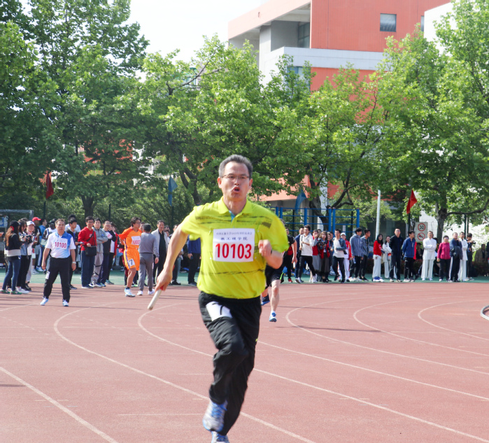 绿色的竞技场,橘红色的跑道,是展现活力的舞台;高高的看台是舞动的青春音符;跑道上运动员争先恐后,挥汗如雨,捷报频传;比赛中我院教职工展现的魅力让人称赞,吕炜老师在女子甲组4*100m接力中,在起跑中小腿肌肉撕裂,仍然坚持完成比赛,并取得优异成绩,为我院团体项目开了好头;穆海涛老师在被钉鞋扎破脚趾的情况下,带着鲜血坚持跑完男子丙组4*100米接力,并斩获第三名,她们这种永不放弃的精神感染了在场的每一位。标枪、铁饼和铅球赛场运动员浑身解数,画出一道道美丽的弧线,我院马淑杰老师在女子甲组铁饼比赛中,又一次打破她自己保持的校记录,实在是令人钦佩;跳跃赛场,运动员聚集力量,爆发活力,奋力争先;观众席上也是气势如虹,每当赛道上有我院运动员,呐喊声,助威声,连绵不断,掌声鼓声震耳欲聋。这声音仿佛是一种无形的力量,推动运动员奋勇向前。