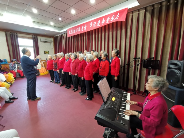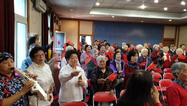 健康聊天室合唱《我们走在大路上》和《歌唱祖国》,声音洪亮整齐,唱出了心中的豪情壮志。