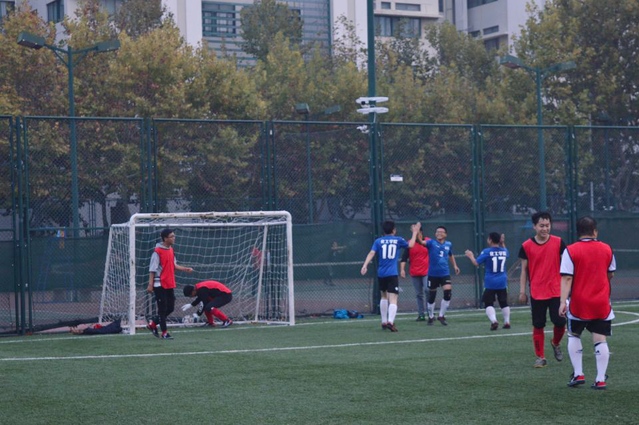本次比赛共有15支队伍、210名教职工足球爱好者参加。15支队伍分为四个小组,我院分在A组,同组对手理学院和石工学院两支队伍均体力充沛,实力强劲。小组赛首场比赛对阵石工学院,我院足球队精心布置战术,场上球员斗志昂扬,团结一心,不时打出精妙配合,最终以5:0战胜石工学院取得开门红,曹美文本场上演“帽子戏法”独进三球。第二场小组赛对阵计科学院,由于实力悬殊,我方最终以10:0的大比分战胜对方,王兆兴取得5粒进球,李国书记下半场仅上场3分钟便攻入一球。小组赛最后一场对阵理学院,理学院有着良好的战术配合及进攻体系,率先进球。但我方队员团结一心,稳扎稳打,在比赛中互有进球,常规时间踢出3:3平局。小组赛计算得分之后,我院足球队以2胜1平的优势小组头名出线。在淘汰赛阶段,我院足球队经过小组赛的磨合后配合愈发默契,在1/4决赛中以6:1的比分战胜地学院。半决赛遇上强劲对手——校企队,对方年轻队员较多,体力占优势,上半场便以2:0的比分领先,我方球员坚持不懈,顽强拼搏,最终通过不停的跑位连进3球,但最终在临近比赛结束时,对方直接任意球打入我方球门,比分变为3:3平。点球环节我方因比对方少进1球最终止步冠亚军争夺。季军争夺战又是在我院与石工学院之间展开,最终1:0战胜石工,取得了第三届教职工足球赛的季军。